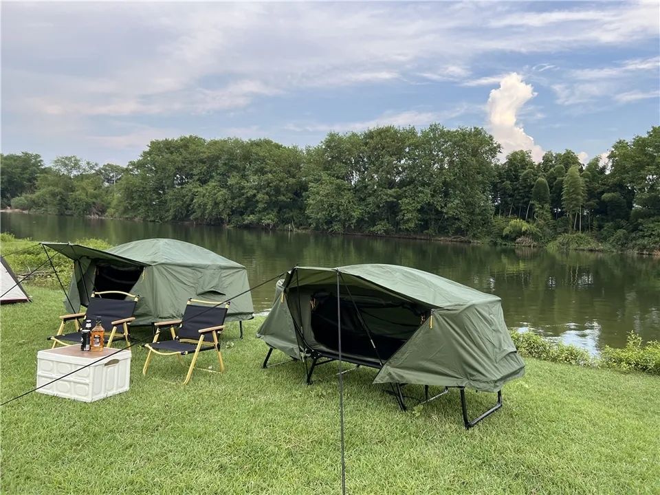 Tente de toit de voiture hors sol en toile OEM, tente de camping pliable en aluminium pour la pêche en plein air, imperméable, lit de camping