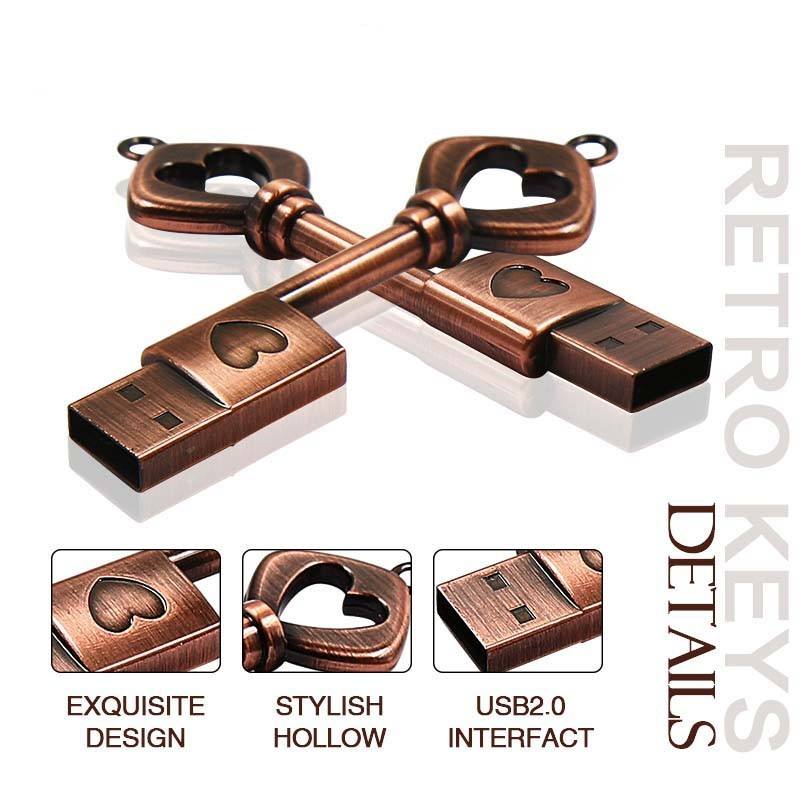 Nom:Nouveau style pendentif tournesol antique en métal, clé USB 3.0 en forme de clé de 1 Go