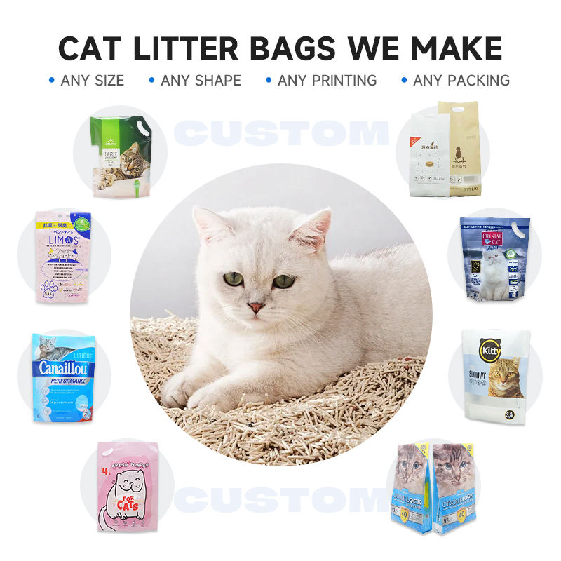 Sac conteneur de sable pour litière pour chat OEM Sacs d'emballage en plastique de couleur personnalisée imprimés