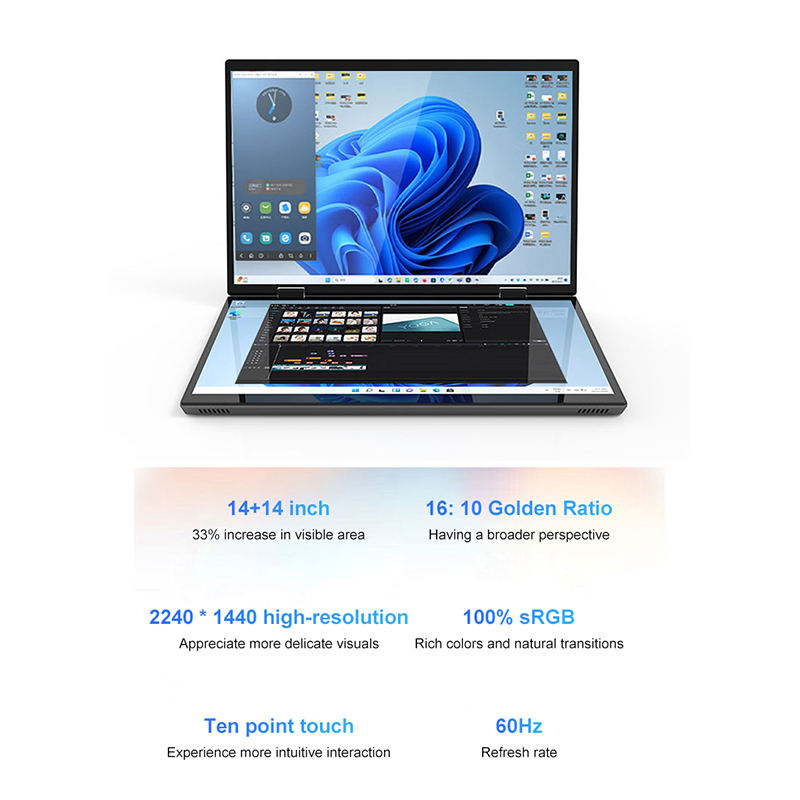 14 ''+ 14'' ordinateur portable à double écran