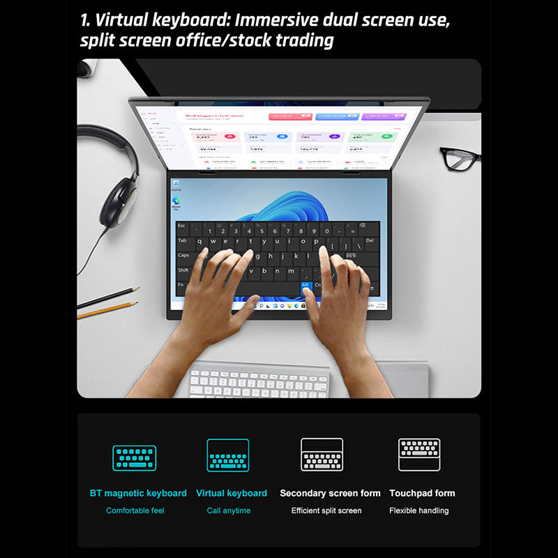 Nom du produit:14 ''+ 14'' ordinateur portable à double écran