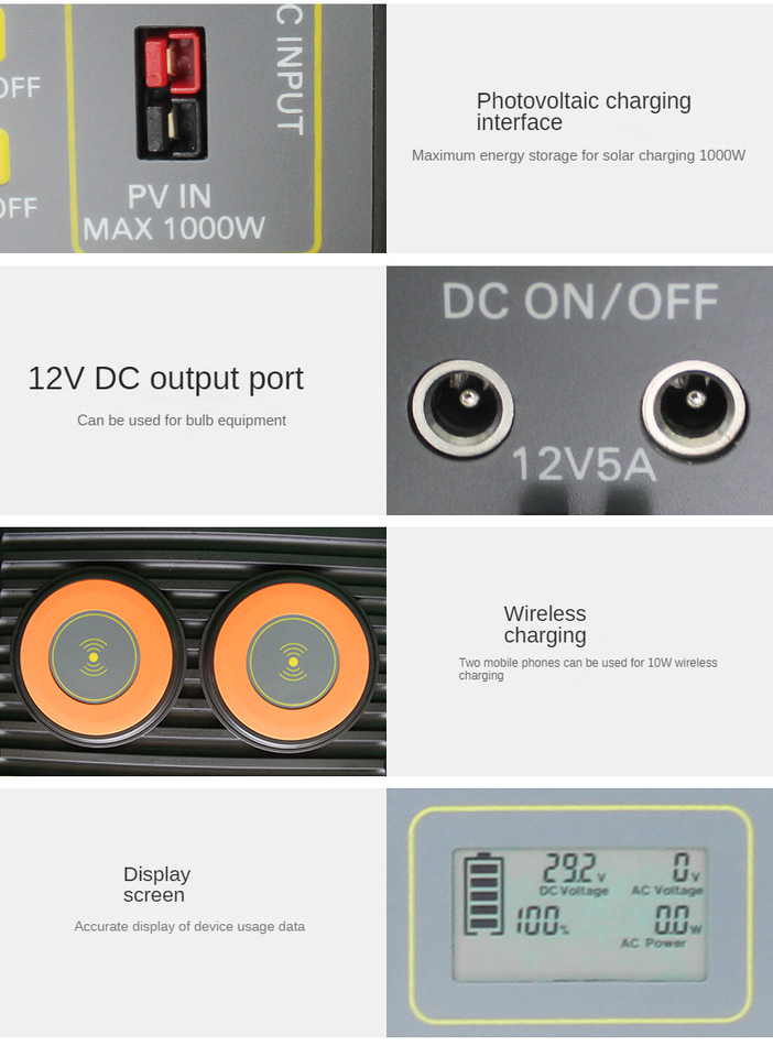 Usages spéciaux:Compresseur d'air, Allumeur de cigare, External battery, Lampe de poche, Démarreur de saut, Télécommande, RV Port, Type C, Recharge sans fil