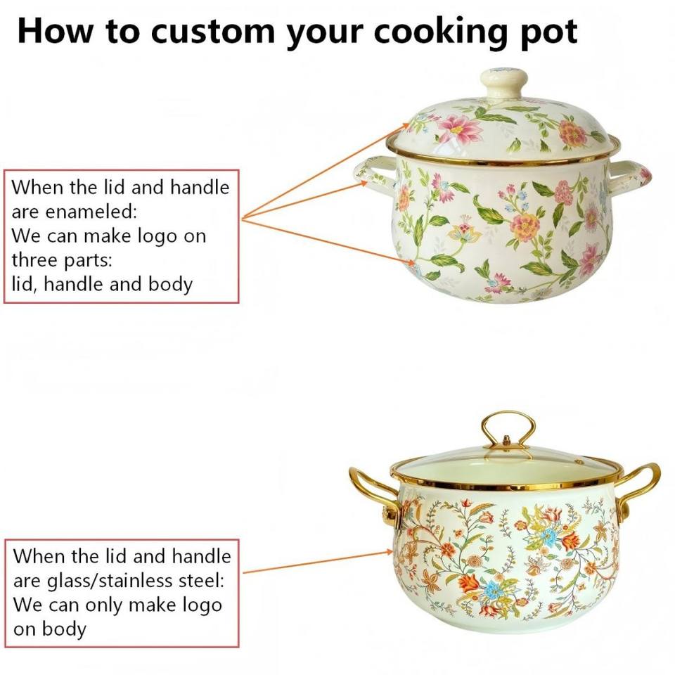 Marmite à soupe et à bouillon à double anse en émail imprimé par transfert thermique, compatible induction, avec couvercle épaissi, pour cuisine, prix OEM économique