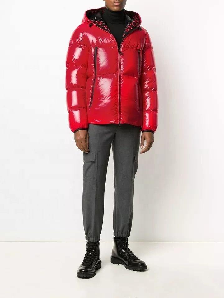 Veste en duvet à capuche rouge classique OEM pour hommes, manches longues et poches zippées, veste d'hiver polaire