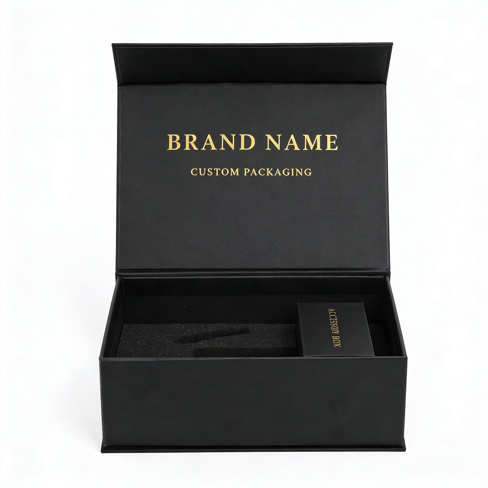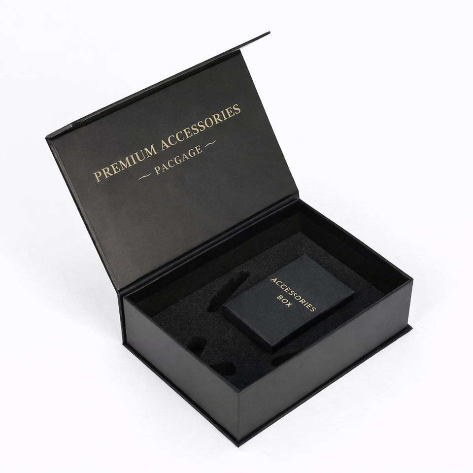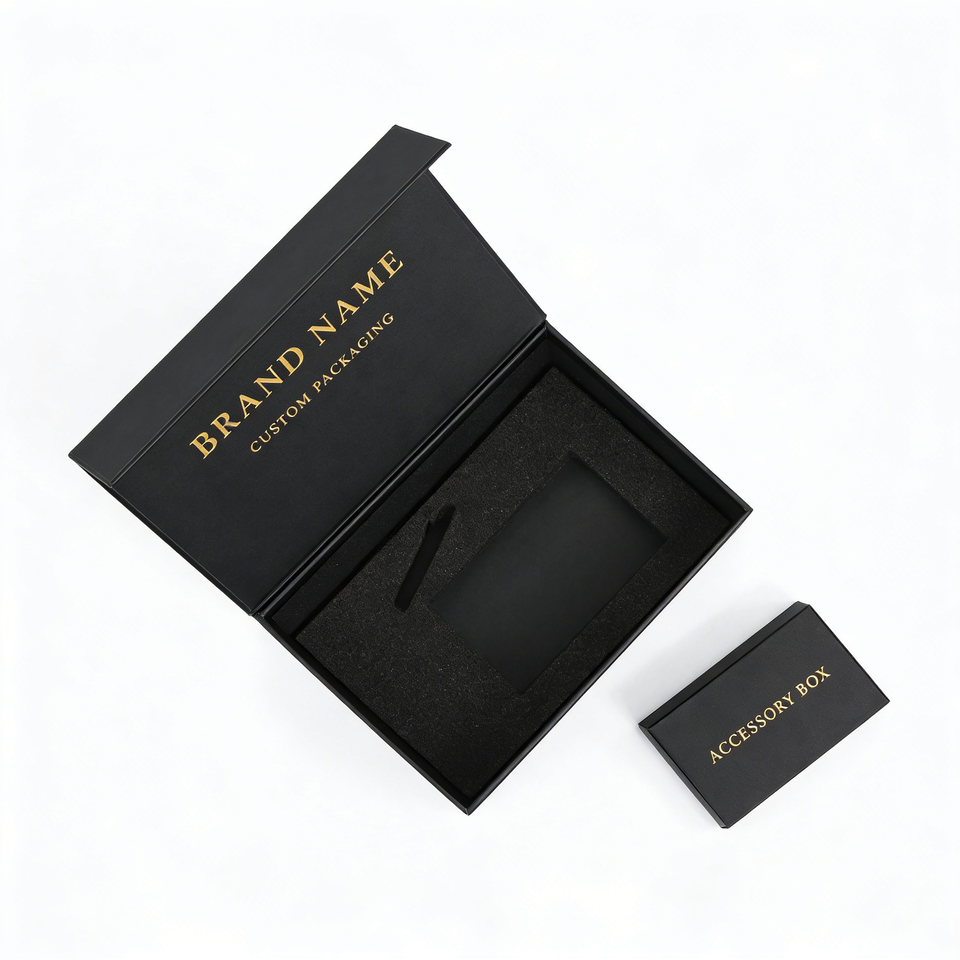 Emballage de boîte rigide pliable OEM en matériaux recyclés pour accessoires électroniques grand public avec pelliculage brillant et revêtement UV