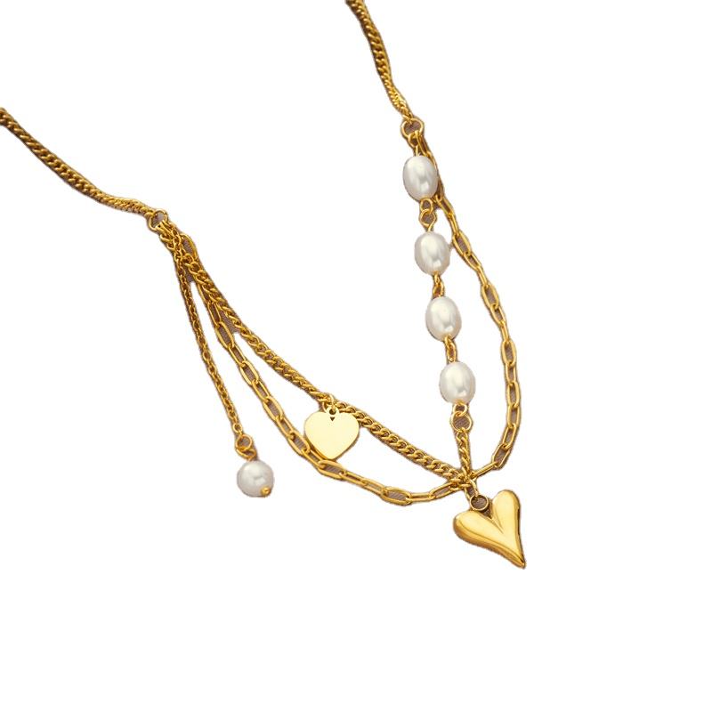 OEM Collier En Forme De Coeur Double Couche Portant Collier Personnel En Acier Inoxydable Perle Coeur