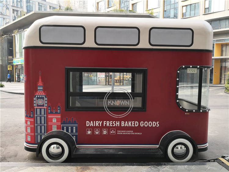 Nom:Bus de restauration rapide britannique, gâteau, boisson, chariot de vente, camion