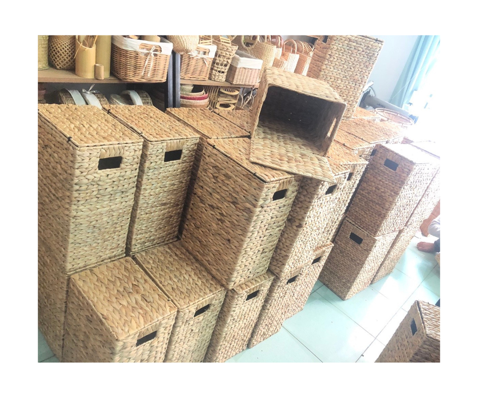 OEM Competitive Price Basket Wholesale Water Hyacinth Woven Grass Storage Laundry Basket with Portable Handles