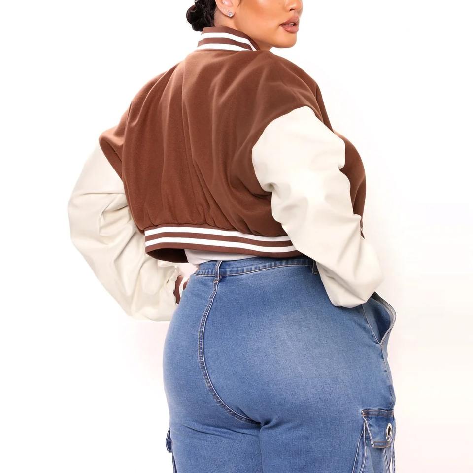 Veste de baseball en molleton de style cool OEM pour femmes, logo personnalisé, impression de numéro, veste bomber antibactérienne