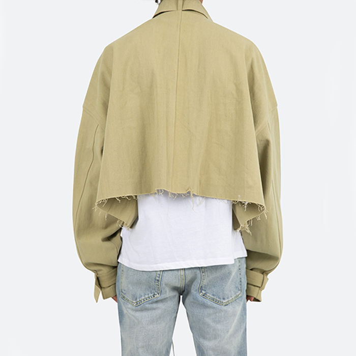 Veste Cargo recadrée OEM avec poches personnalisées Veste à fermeture éclair surdimensionnée pour hommes Veste décontractée Cargo avec poches à ourlet brut Vestes à glissière pour hommes