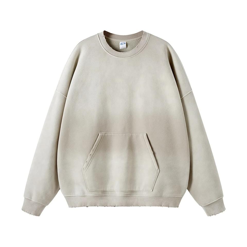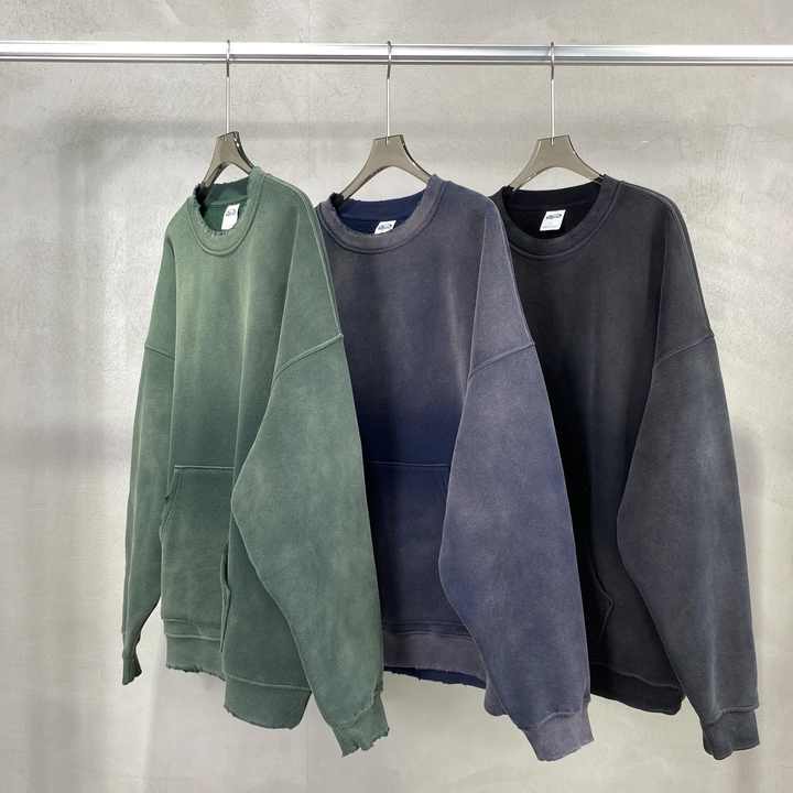 Sweat-shirt à col rond en coton 100% personnalisé OEM, couleur dégradée, lavage à l'acide noir, pour la saison d'automne, teinture unie