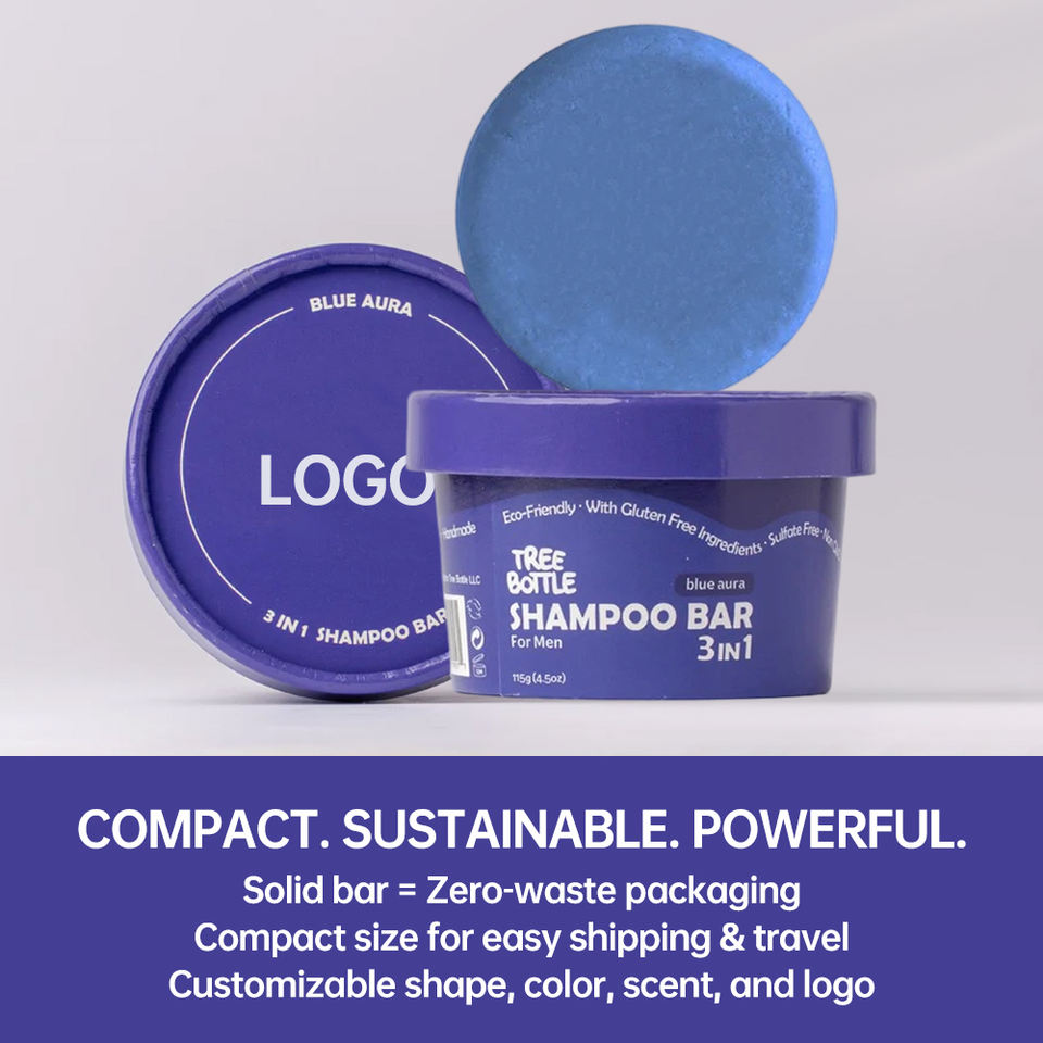 Barre de shampoing anti-pelliculaire hydratante 3 en 1 personnalisée OEM, adaptée aux végétaliens, taille de voyage, shampooing de soin pour les cheveux des hommes, barbe et corps
