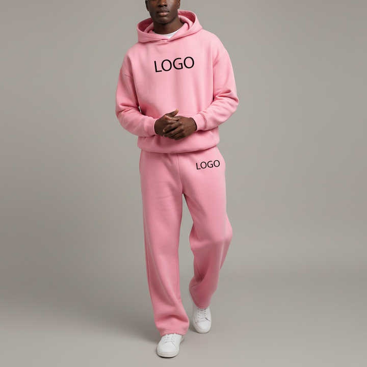 Ensemble de survêtement streetwear personnalisé OEM 450 GSM pour homme, couleur unie, coupe ample, 2 pièces : sweat à capuche et pantalon de jogging large
