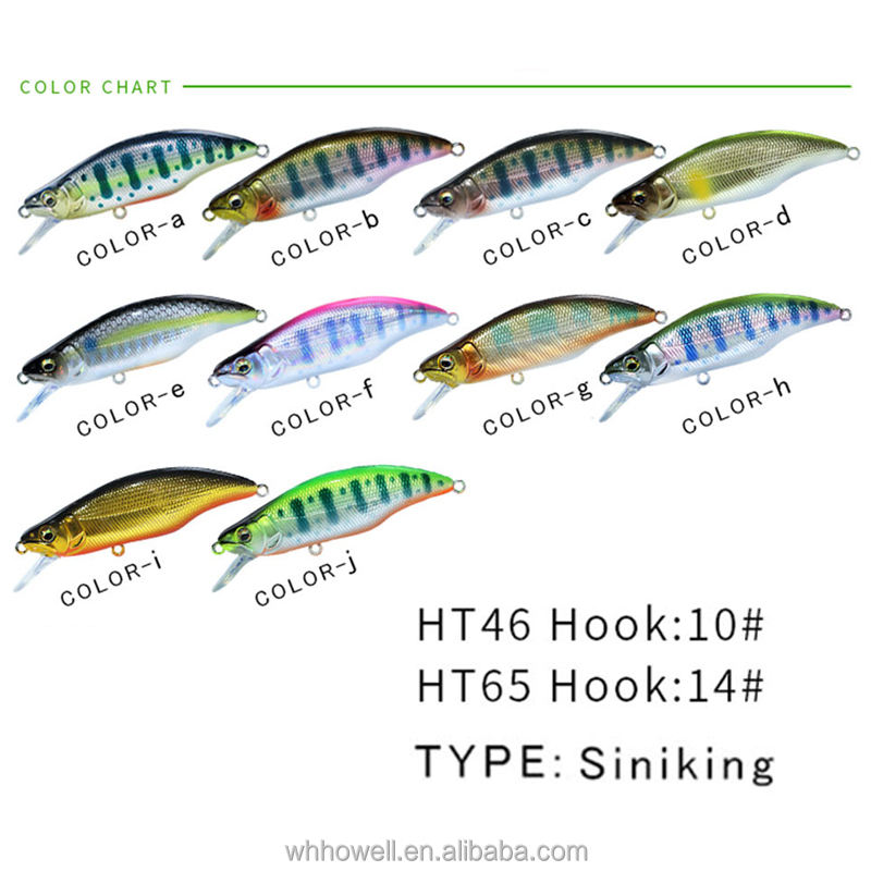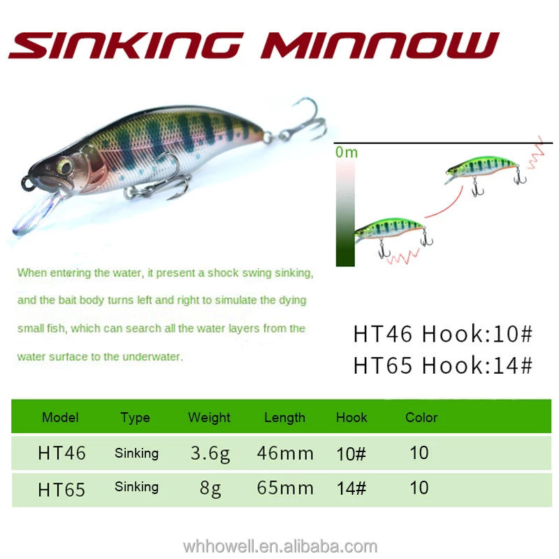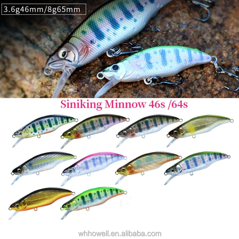 OEM Personnalisé 46mm 3.6g Naufrage Minnow Jerkbait Wobbler Dur Appâts Artificiels Hameçons pour Saumon Brochet pour la Pêche en Ruisseau Rivières Lacs