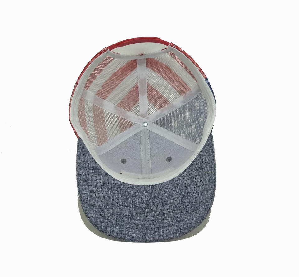 Casquette OEM personnalisée à 6 panneaux en maille à bord incurvé, casquette de camionneur avec patch en cuir personnalisé, casquette de camionneur fabriquée au Vietnam