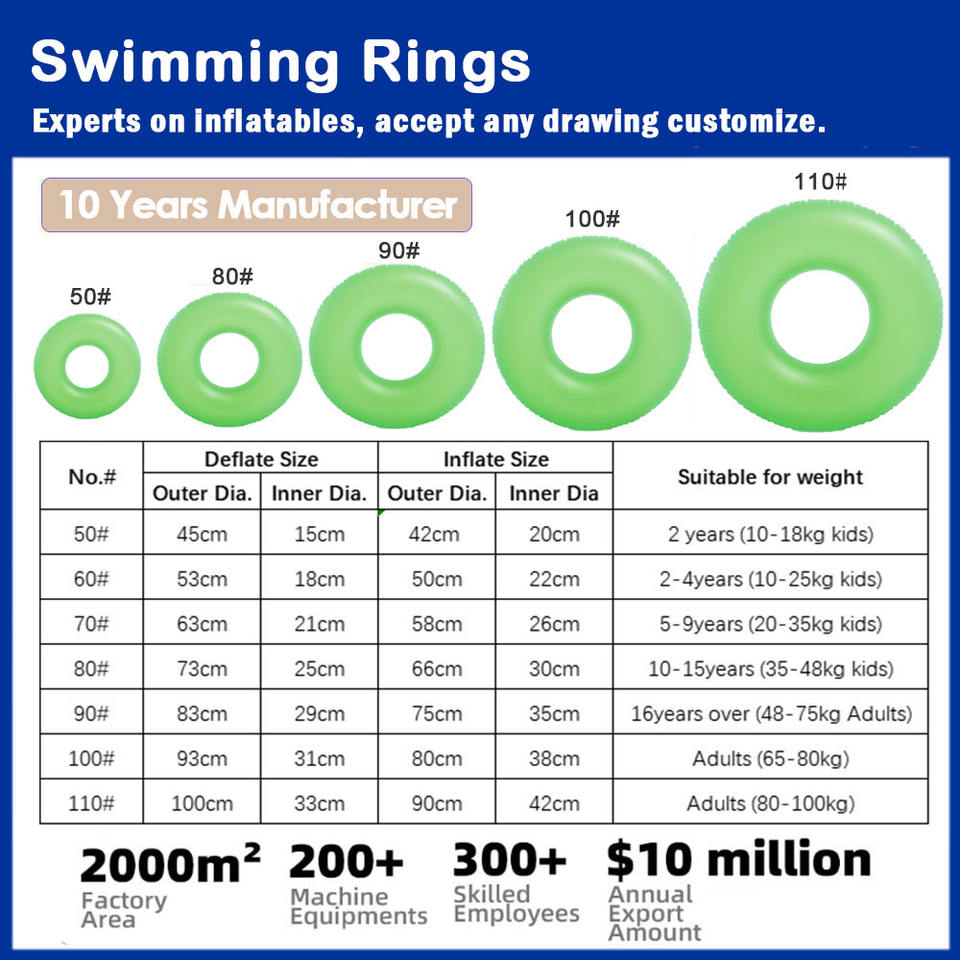 Bouées de natation gonflables transparentes personnalisées OEM 60/80/90/100/120CM pour adultes, anneaux flottants pour piscine, pour K