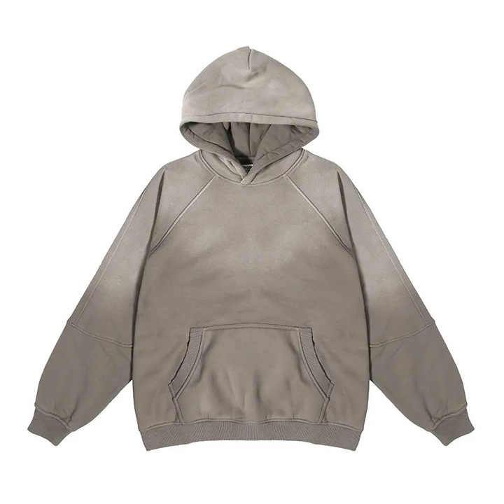 Sweat à capuche surdimensionné en molleton délavé personnalisé OEM pour hommes, 100 % coton, thermique, brodé, pour usage extérieur en hiver, impression numérique
