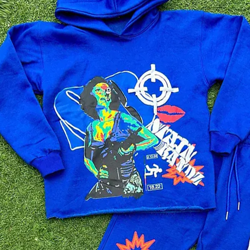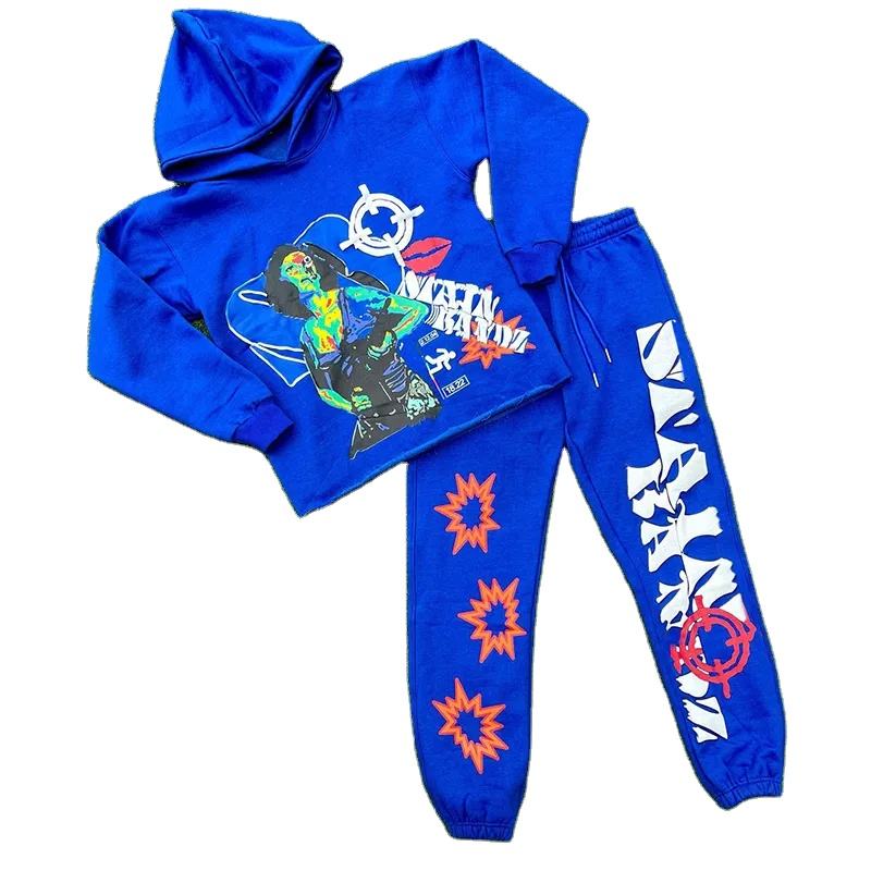 OEM Custom Acid Wash Sweat Suits Cotton Thick Zip up Applique Embroidery Patch Tracksuits Hoodies and Sweatpants Sets for Men