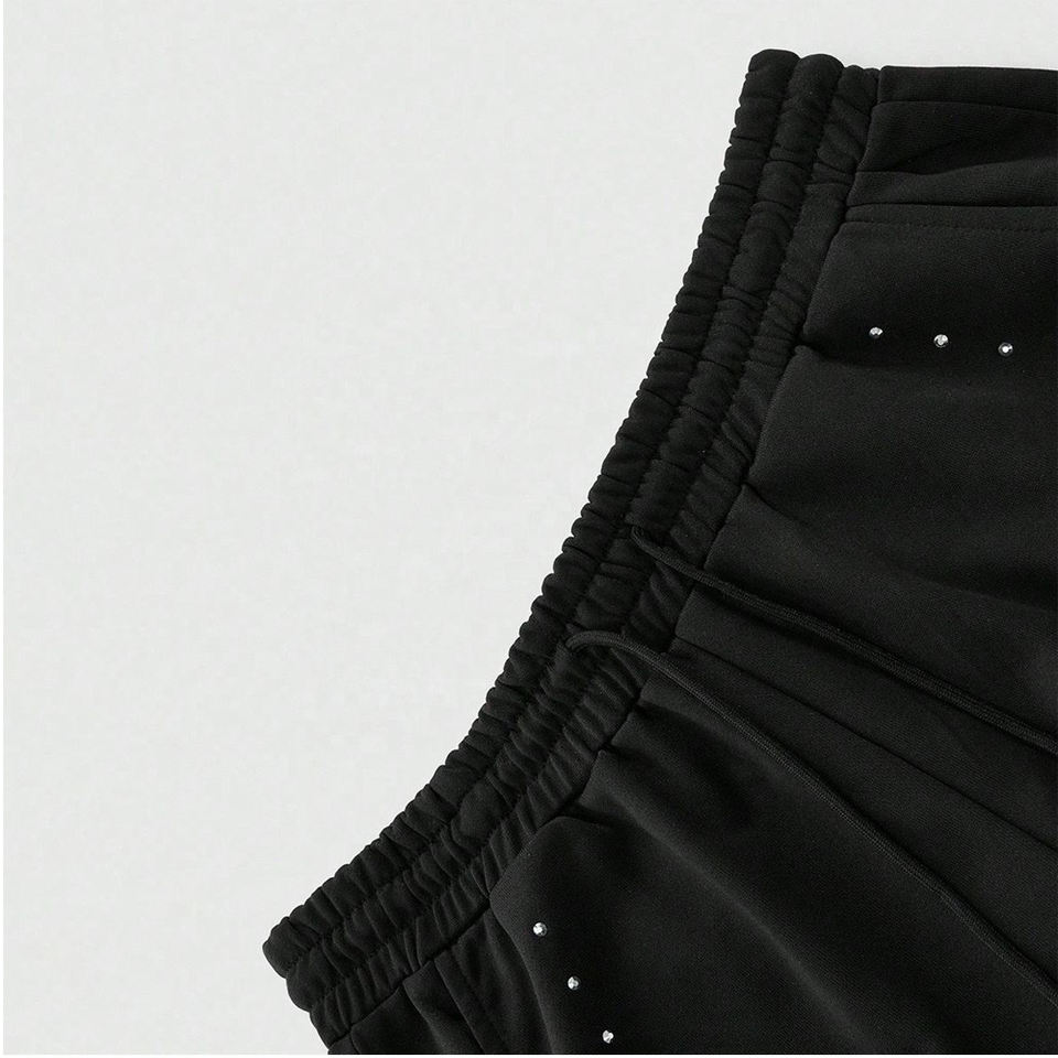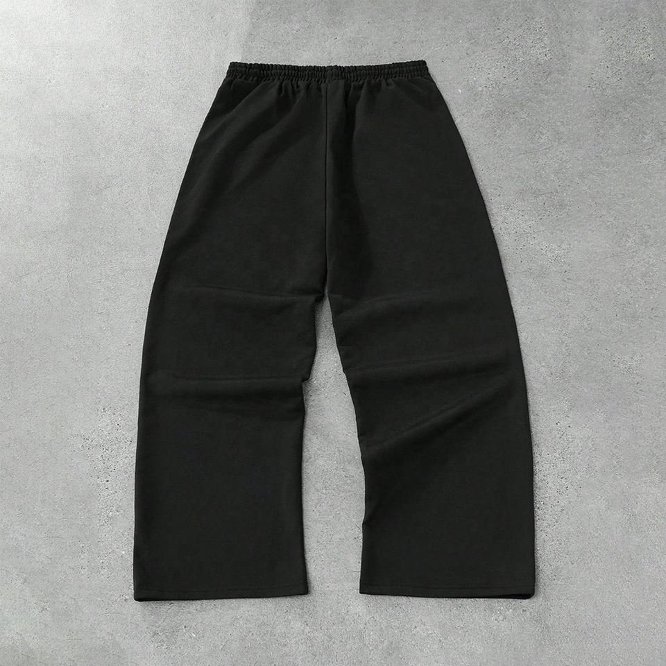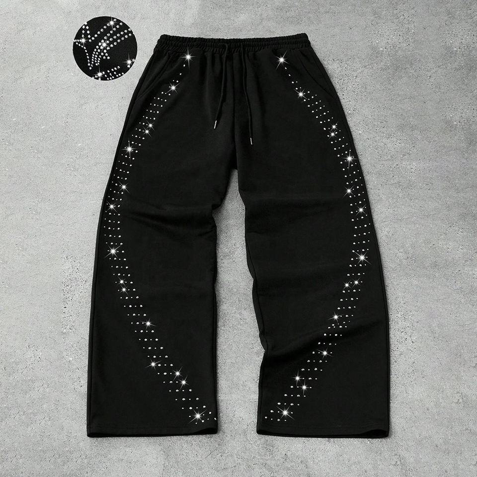 Pantalon de survêtement unisexe OEM personnalisé, délavé à l'acide, avec strass, coupe large, taille élastique, coupe ample, évasé, style streetwear, décontracté pour homme