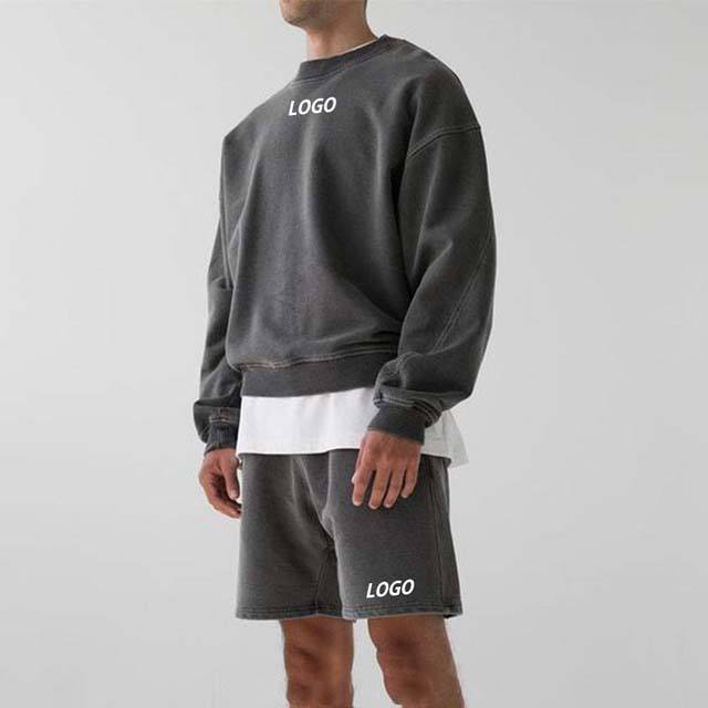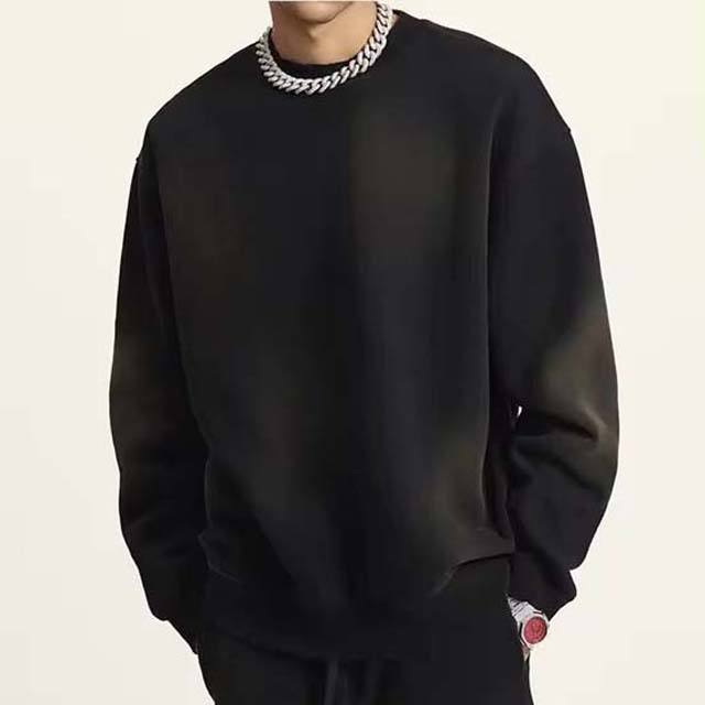 Sweat-shirt d'hiver brodé pour homme, coupe classique, en coton délavé à l'acide, style vintage usé, personnalisable OEM