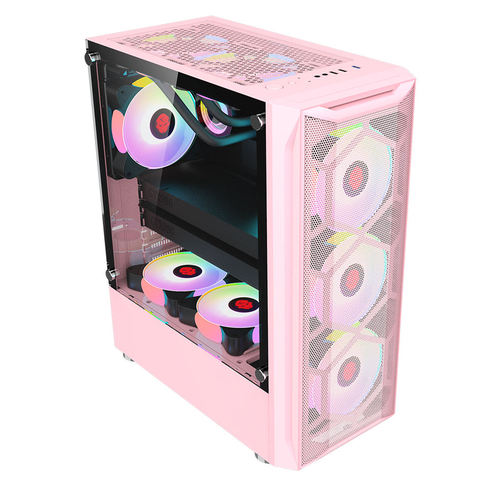 OEM Étui en verre trempé de marque personnalisée Étui pour PC de jeu E ATX Étui pour ordinateur de bureau de jeu Boîtier d'armoire PC rose
