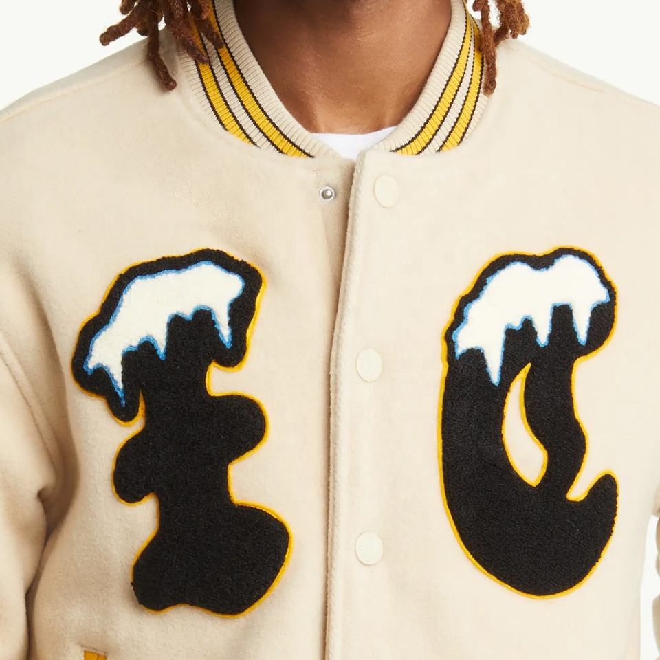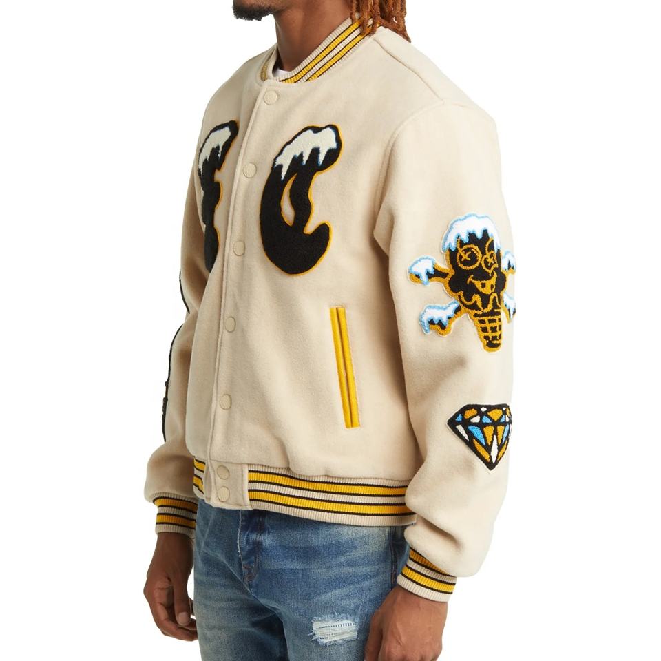 Veste de baseball vintage en chenille avec broderie personnalisée OEM, col montant pour homme, hiver