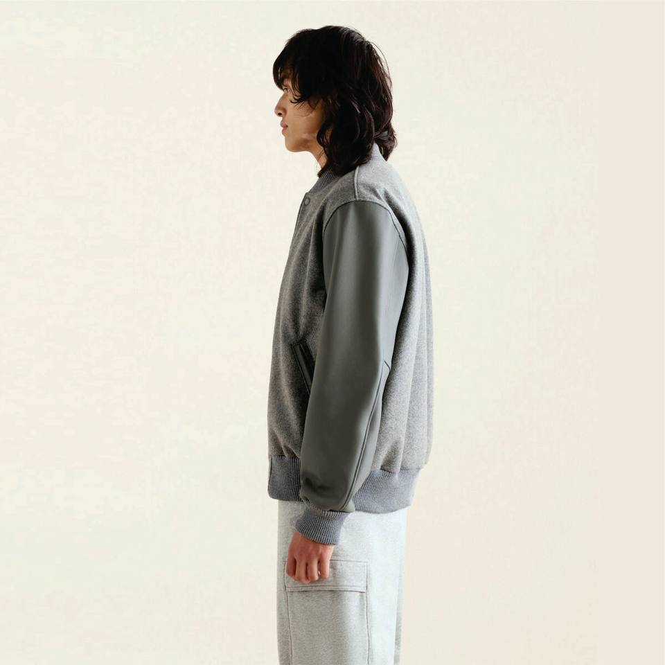 Blouson de baseball gris confortable à manches en cuir de laine avec logo brodé en chenille personnalisé OEM Blouson universitaire Letterman pour moi