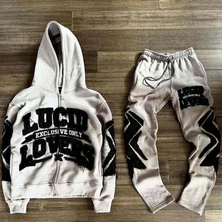 OEM Custom Cotton Fleece Tracksuit Oversize Pullover Hoodie Suit Sweatsuits pour Hommes