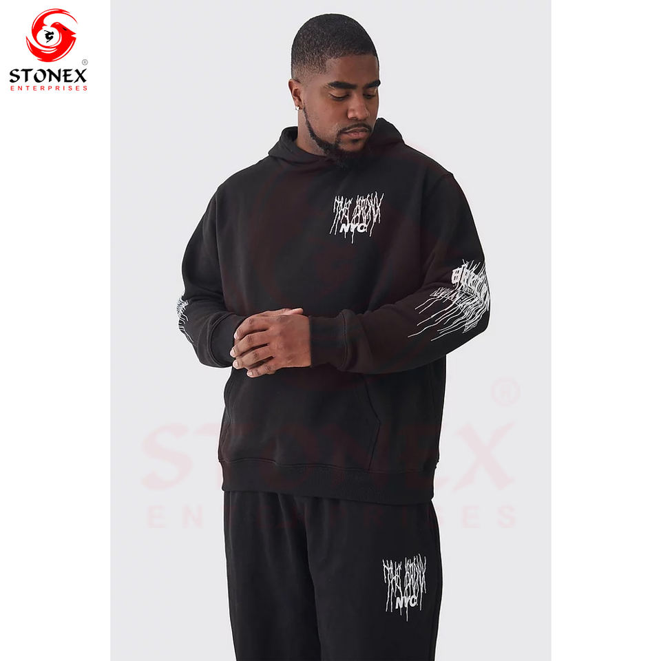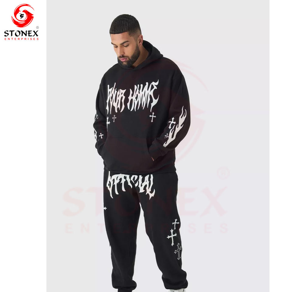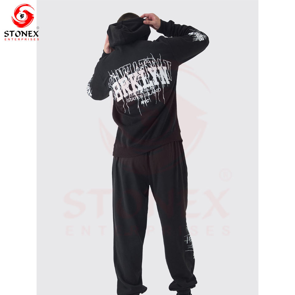 Ensemble deux pièces en coton personnalisé OEM ensembles sweat à capuche et pantalon vintage délavés avec fermeture éclair et strass survêtements avec patch délavé au soleil pour hommes