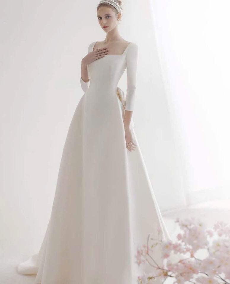 OEM Custom Design Elegant A-line Wedding Dress Handmade Mikado Fabric Gown High Quality Mikado Fabric Long Brides Bridal
