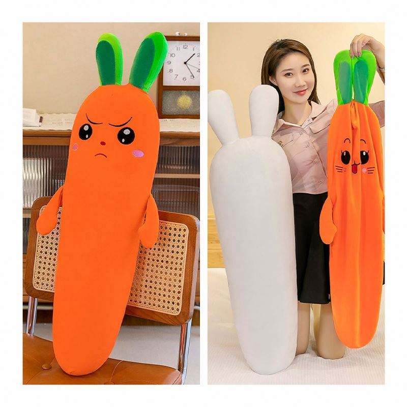 Peluche géante en forme de carotte, design personnalisé OEM, pour enfants, coussin lesté avec fermeture éclair, animal en peluche en coton PP, super doux, anti-stress