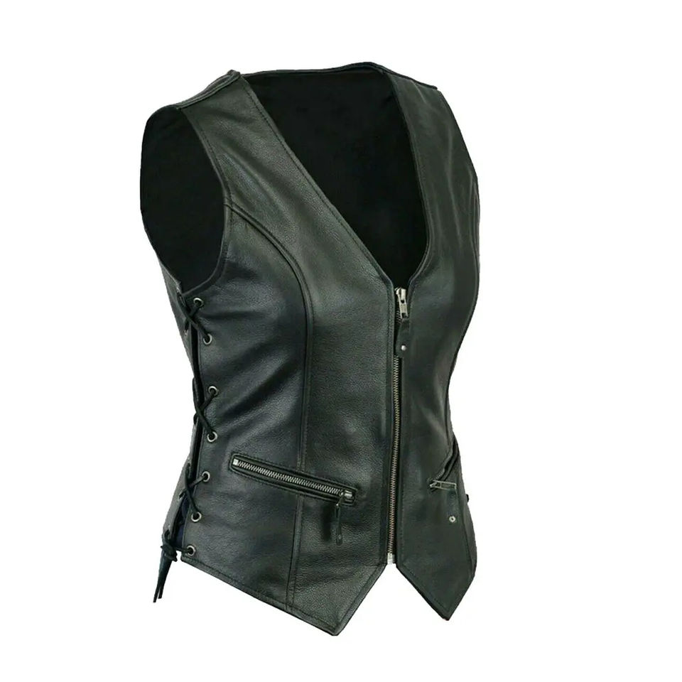 OEM Design personnalisé Broderie de haute qualité Gilet en cuir de vachette épais de qualité supérieure entièrement doublé avec des gilets en cuir de moto en cuir