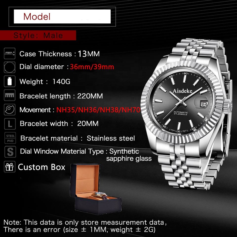 Dispositif:Date automatique, Résistant à l'eau, Imperméable, Résistant aux chocs, Petit de trois aiguilles