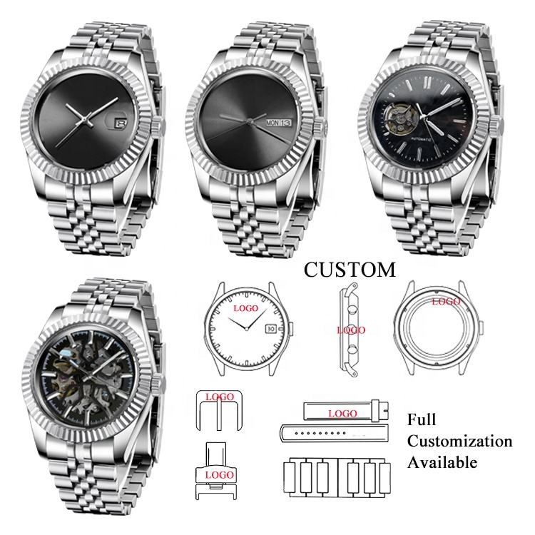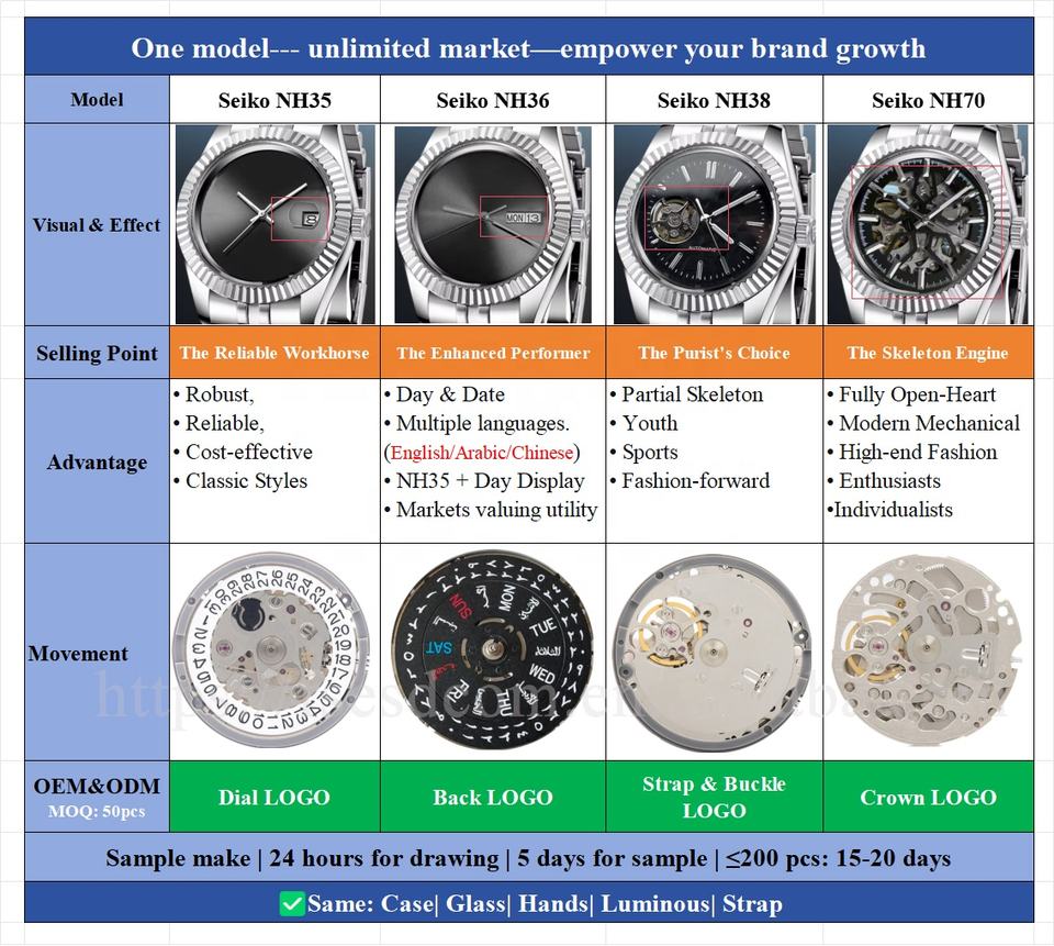 Cadran OEM personnalisé Logo Mod Japon NH35/NH36/NH38/NH70 Mouvement Montre mécanique pour hommes Bracelet en silicone résistant à l'eau Cadran pointeur