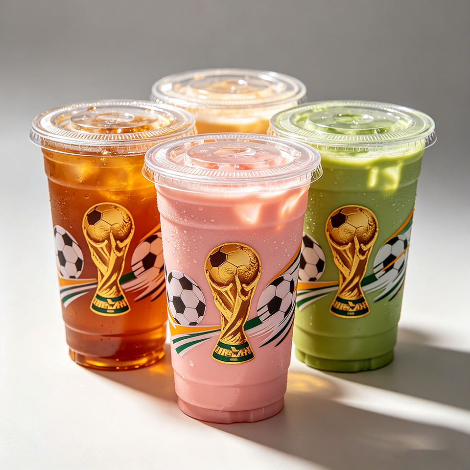 Gobelets à bulles jetables personnalisés OEM, gobelets à bulles jetables en plastique pour les fêtes de football, les cafés et les boutiques