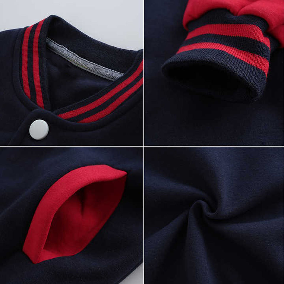 Veste de sport pour enfants avec logo brodé personnalisé OEM, veste en cuir à manches longues pour enfants avec doublure en laine pour l'hiver en vente