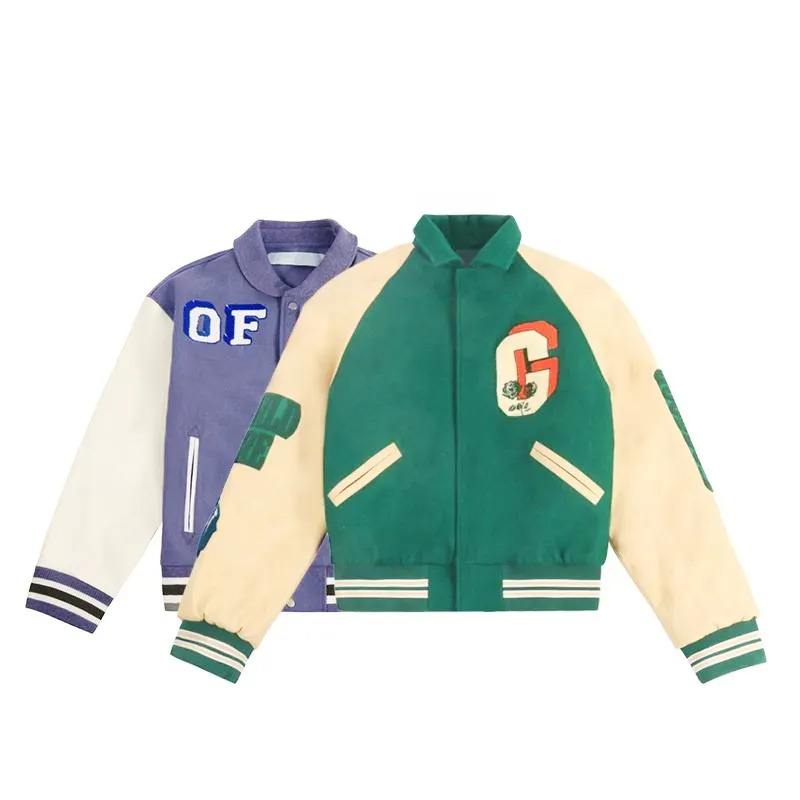 Veste d'hiver en peluche avec logo brodé personnalisé OEM, veste blanche en patchwork noir, veste universitaire pour hommes
