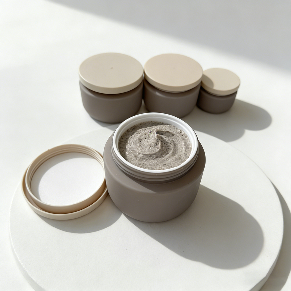 Gommage exfoliant personnalisé OEM dans des pots en HDPE au toucher velours, rechargeables, options multi-tailles, gommage en marque privée