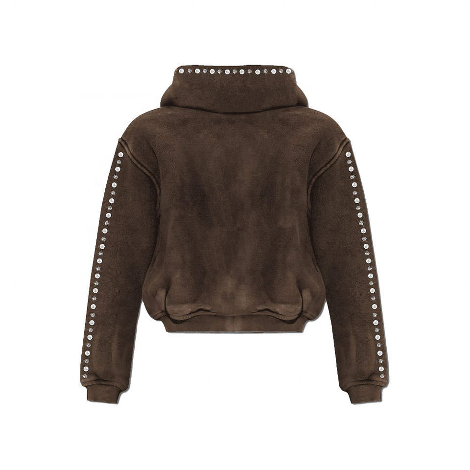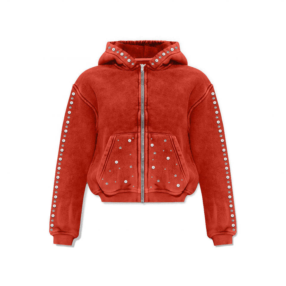 OEM Custom Heavyweight Cotton Mens Hoodie Zip-Up Sun Faded Acid Washed Winter Gem Stones Cropped Hoodie with Customised Stones