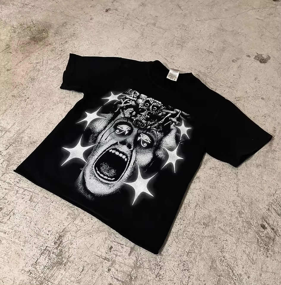 T-shirts pour hommes personnalisés OEM, impression sérigraphique graphique, 100% coton 270 g/m², sans ourlet, coupe carrée courte, lettrage DTG