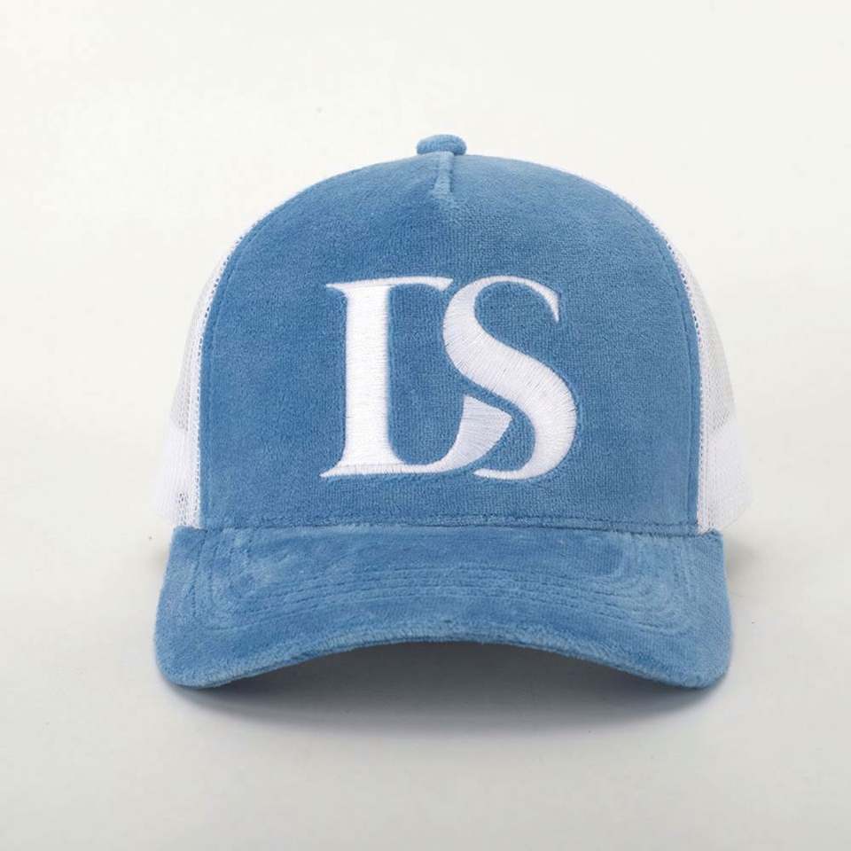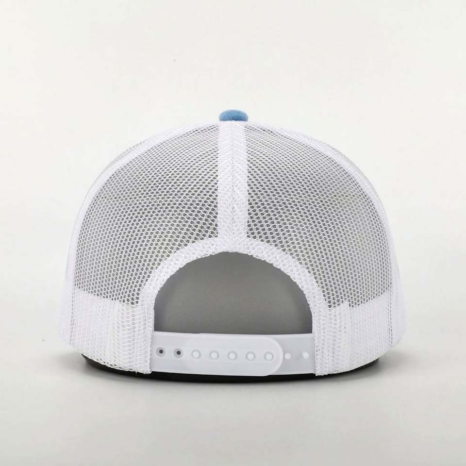 Casquette Trucker OEM Personnalisée de Haute Qualité à 5 Panneaux pour Hommes et Femmes, avec Logo Brodé 3D, en Velours Bleu Ciel et Maille, Fermeture Snapback