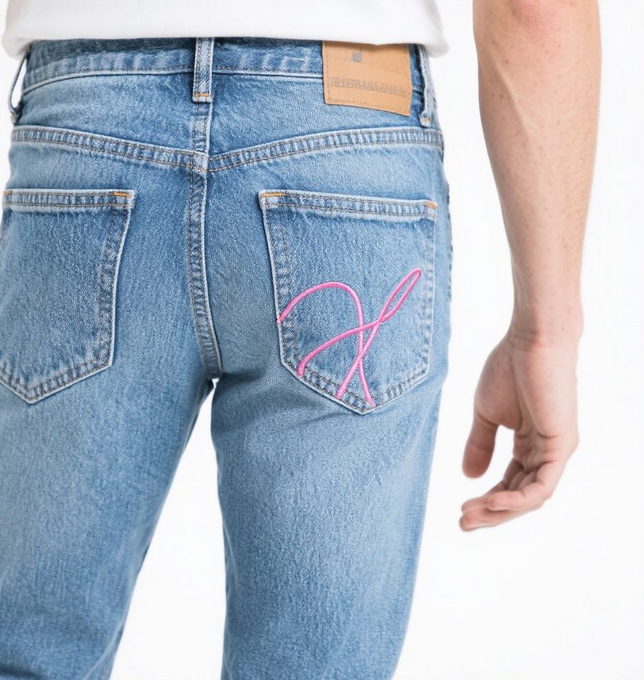 OEM Pantalon en denim élastique et extensible de haute qualité personnalisé à la mode Jeans déchirés coupe skinny pour hommes Écussons roses Hip Hop solide
