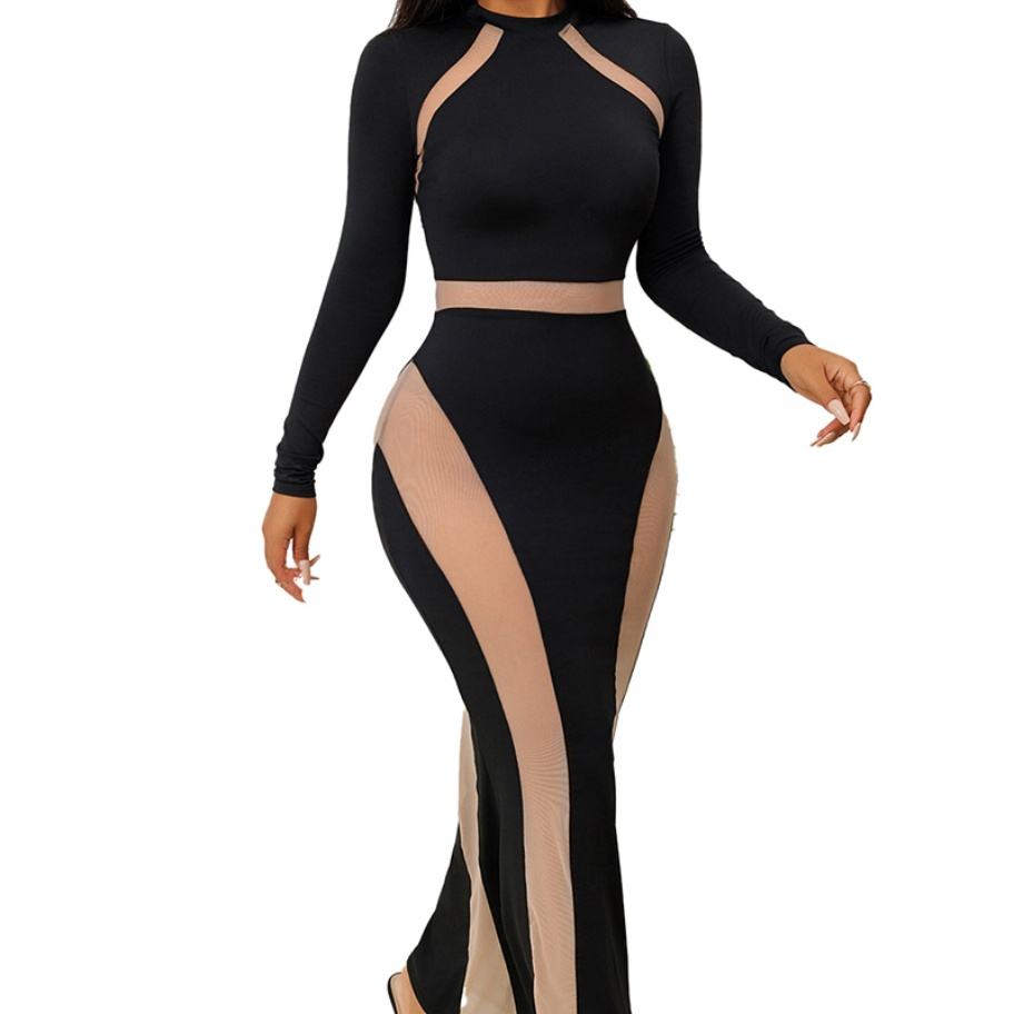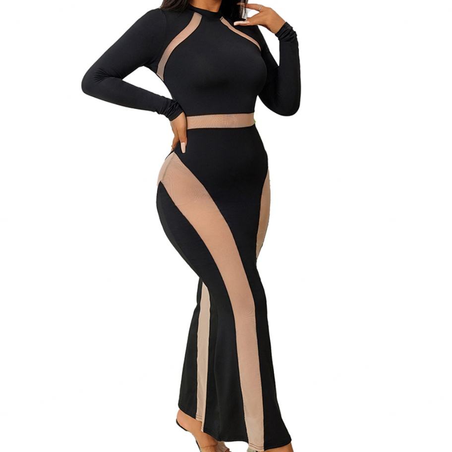 Robe midi décontractée noire élégante et sexy pour femme, tricotée, à manches longues, coupe droite, de haute qualité, personnalisable OEM, pour l'été