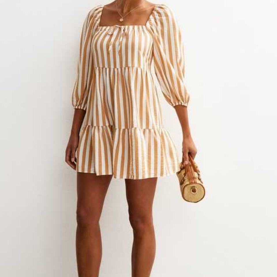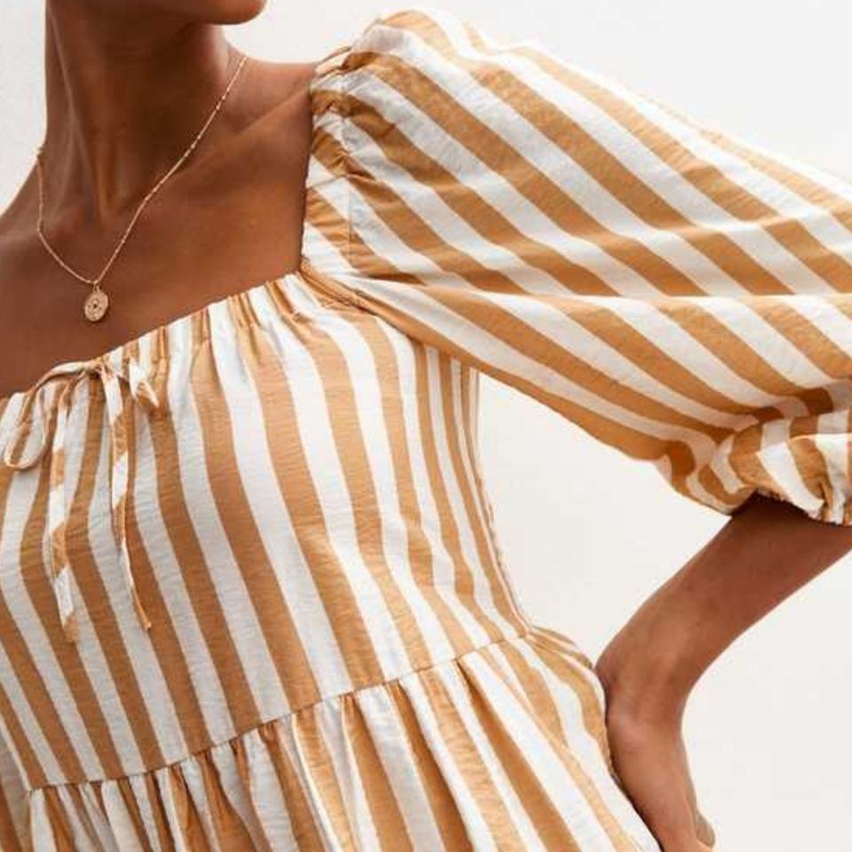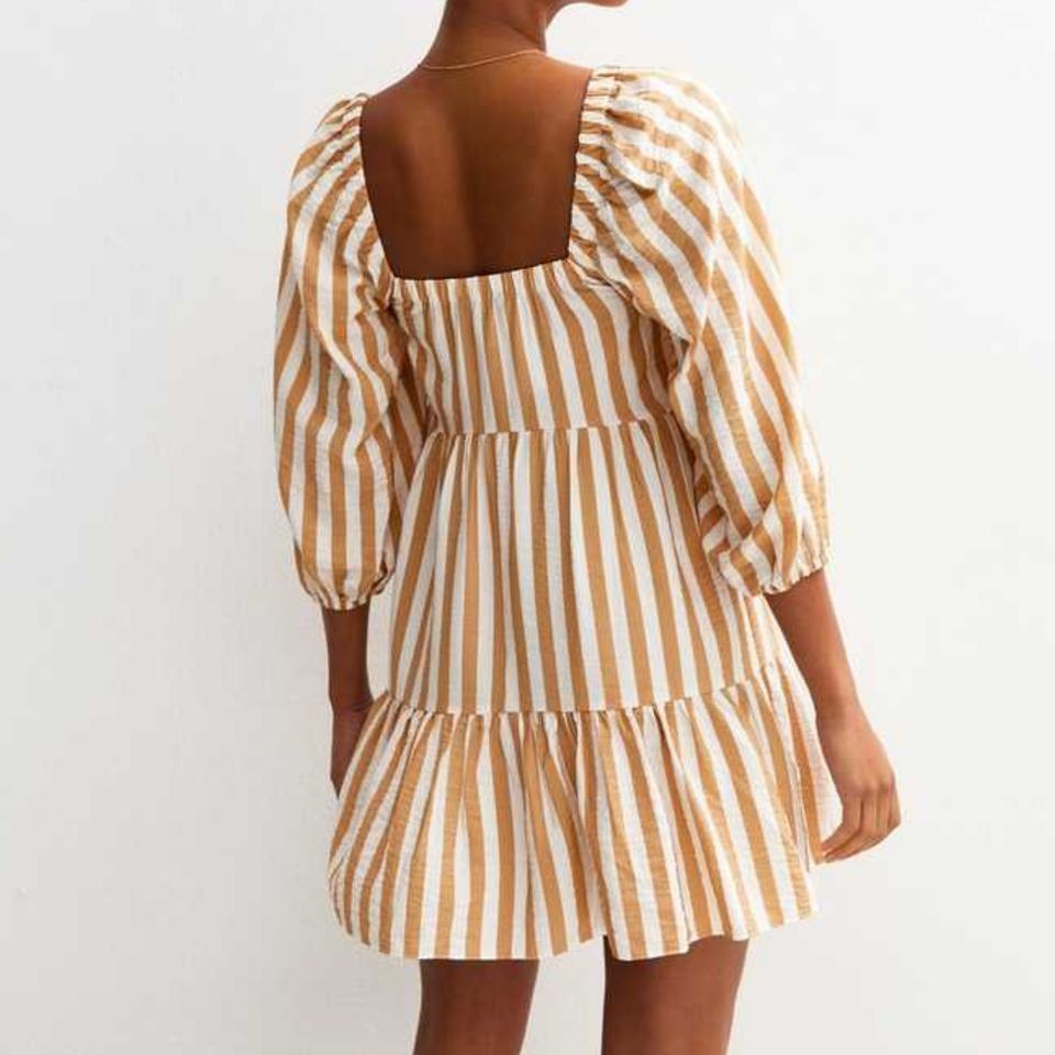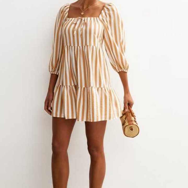 Robe d'été en lin à manches courtes élégante pour femmes, sur mesure, de haute qualité, design rayé, robe mini en coton, mode décontractée