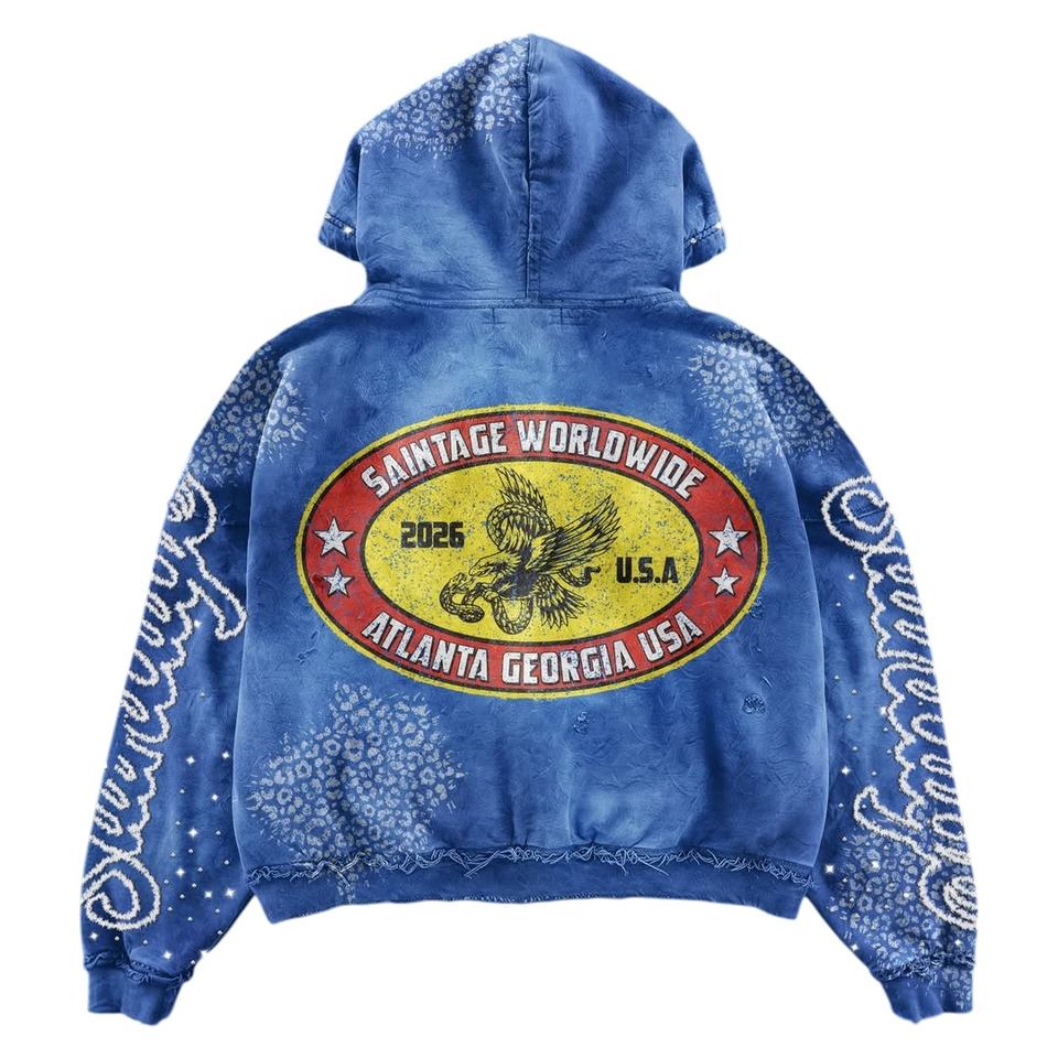Ensemble sweat-shirt et pantalon de survêtement unisexe en molleton 100 % coton, style streetwear d'hiver, personnalisable OEM, de haute qualité, avec impression délavée et logo frontal