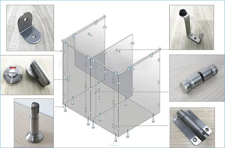 Support antirouille en forme de L personnalisé OEM pour les cloisons de toilette de centre commercial Quincaillerie durable pour un usage intensif