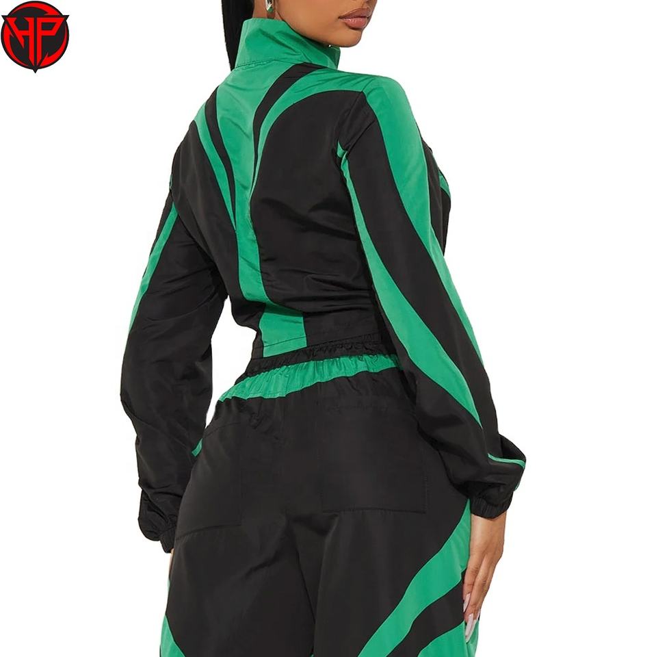 Ensemble de survêtement pour femmes, veste courte et pantalon de jogging, logo personnalisé OEM, bloc de couleur, coupe-vent athlétique pour le sport