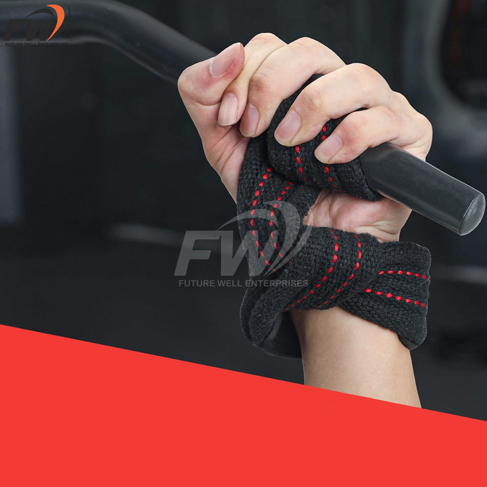 Sangles de levage en coton personnalisées OEM avec logo, bandes de maintien pour poignets de musculation avec design en forme de 8, support de main pour fitness avec logo