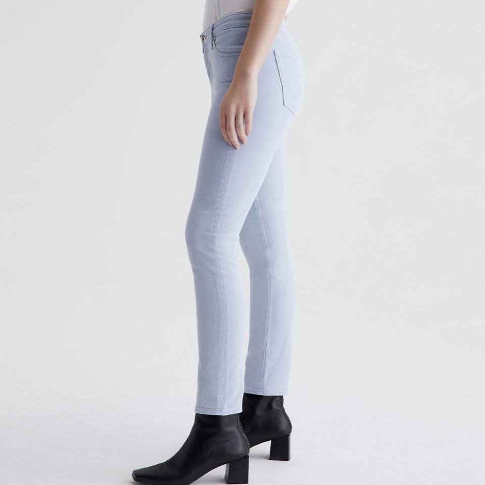 Jean cigarette taille mi-haute bleu clair sur mesure OEM pour femme, en denim extensible doux, respirant, en coton, coupe crayon à cheville courte, pour gaucher