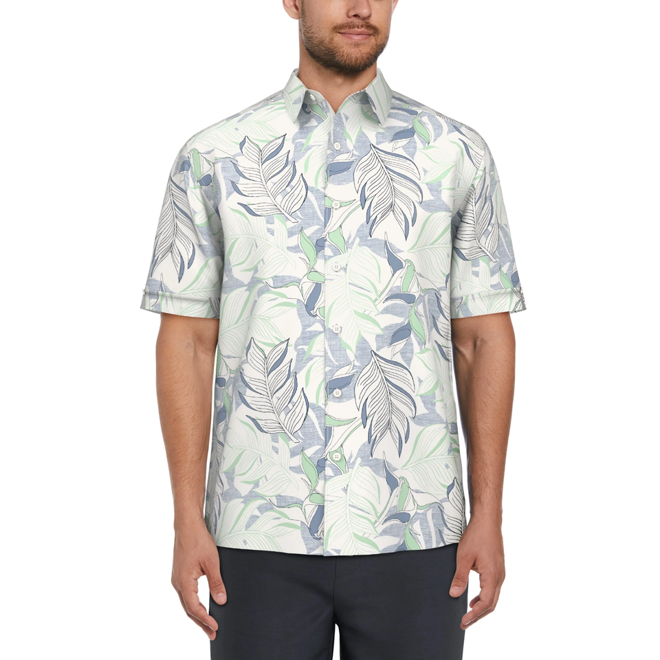 OEM Conception de logo personnalisé 100% Lilen hommes anti-rides coupe régulière partout impression de fleurs couleur chemise à manches courtes col tourné BD